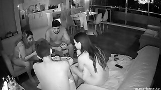 Amateur couple simultaneous ejaculation while watching movie