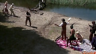 SummerSinner.com - Wild brunette hottie loses her mind deep-throating a bunch of hard dicks in swinger'_s soiree