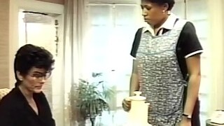 wspaniała dziewczyna o ciemnych włosach i wąsach siedzi twarzą zabójca stary, podczas gdy on dostaje jego rura zasysania poprawnie