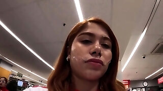 Lucky man enjoys a PUBLIC BLOWJOB from Mini Vamp