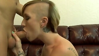 Tattooed towheaded shemale having sex on webcam