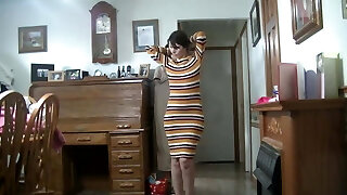 Horny 19yo Slips Off Skirt and Showing Legs In Sheer Stockings