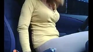cheating wife, in the car, fucked her in the mouth and jizz amply on her face. in a car, in a public place