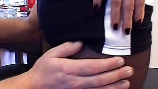 éjaculation dans les collants de la demi-soeur-branlette avec les fesses, branlette avec les pieds