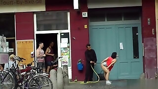 Traînée par une chaîne et en arrivant à Four pattes comme une chienne, Christelle, une black-haired mature très salope a réaliser ses fantasmes en se faisant baiser par trois gars noirs aux gros calibres