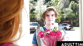 ADULT TIME - Virgin Delivery Guy Gets Tricked Into Joining WILD ALL-MILF REVERSE GANGBANG Fucky-fucky!