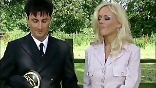 灰白的金发女郎轮流在沙发上窒息男子气概