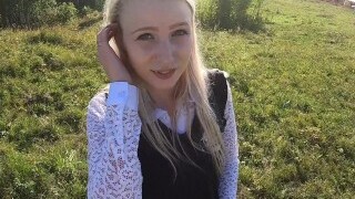 Юную красивую школьницу трахнули в рот и киску по пути из школы